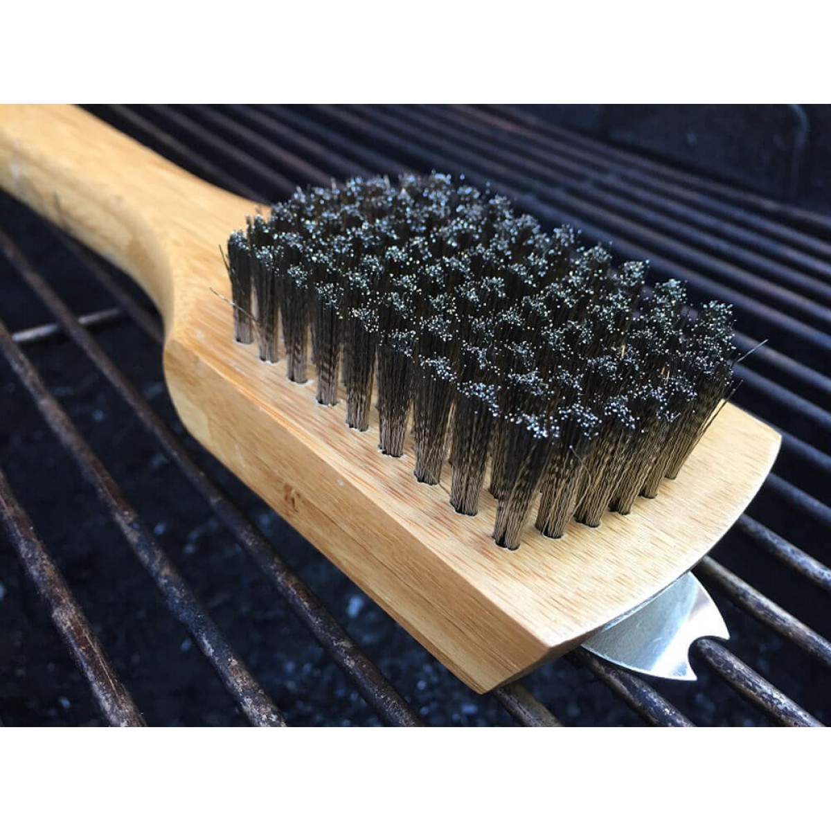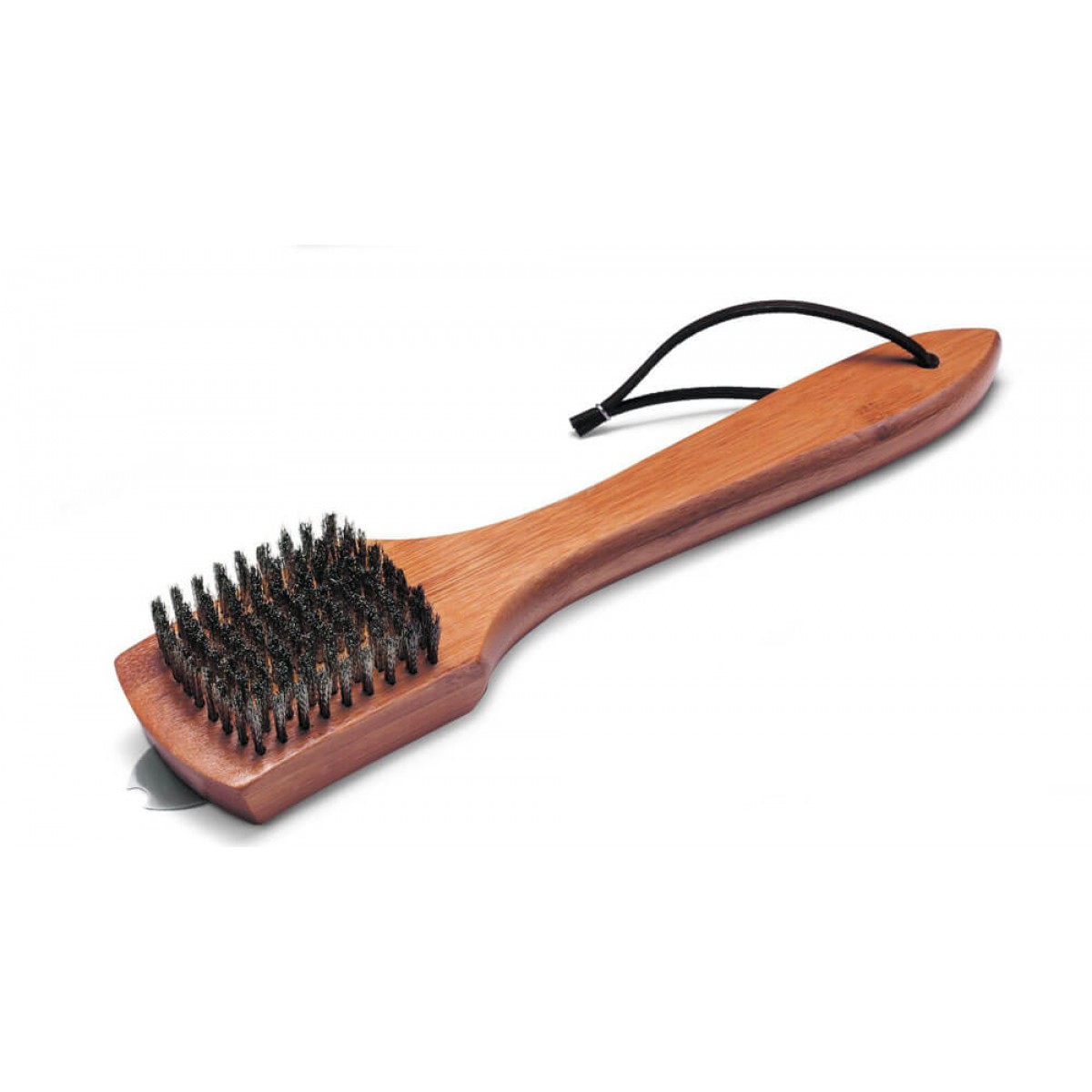 Описание Щетка со стальной щетиной и зазубренным скребком для снятия особо сильных загрязнений с решетки. Используйте щетку на горячем гриле каждый раз перед тем, как готовить и сразу после приготовления пищи.