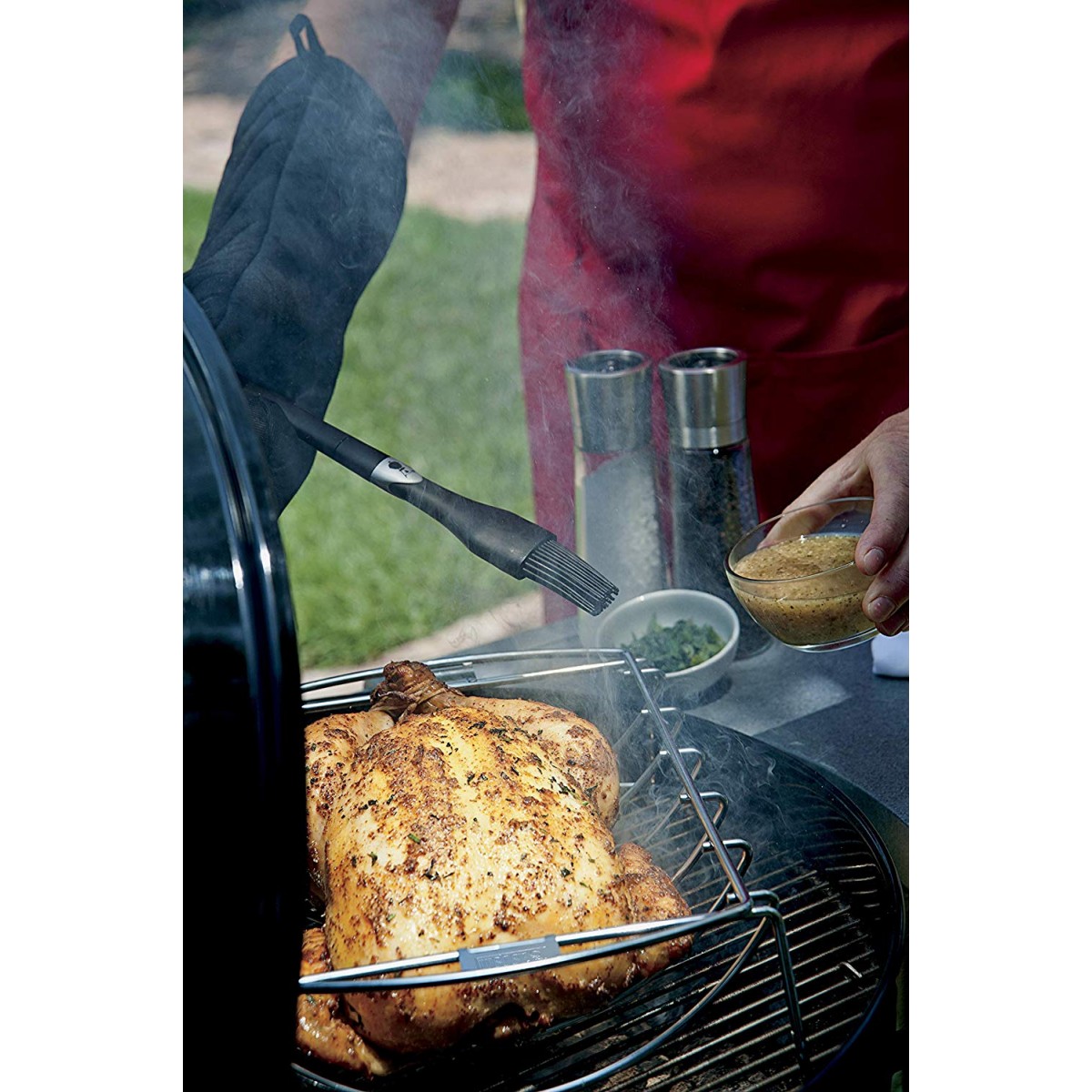 Описание Лучший выбор для приготовления блюд на гриле, требующих большого количества соусов и глазури — силиконовая кисть Weber. Разработанная специально для гриля, кисть имеет прочные силиконовые щетинки, которые не оторвутся и не сотрутся, а главное — не впитают запахов во время готовки. Кисть позволит наносить на блюдо максимальное количество соуса, равномерно и быстро. Кроме этого, мягкий материал ручки исключает скольжение и обеспечивает комфорт в работе. После использования кисть можно мыть в посудомоечной машине.