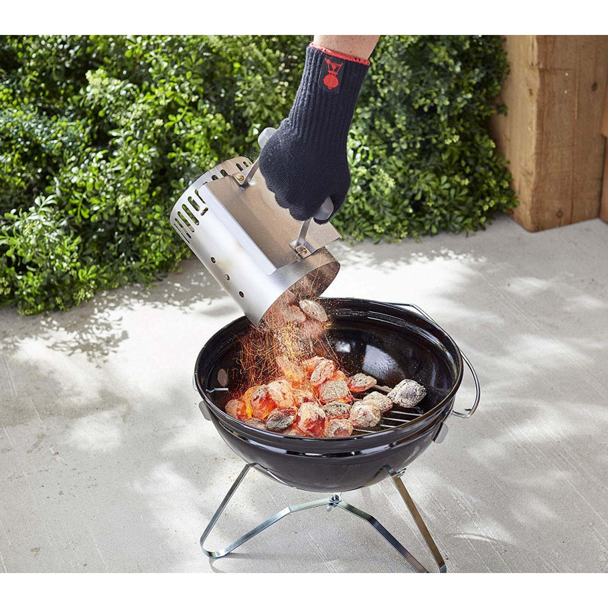 Портативный стартер Weber решит все эти вопросы легко! Как это работает? Во-первых, объем позволяет поместить в него необходимое количество брикетов для косвенного или прямого приготовления. Сама труба сделана из стали и снебжена ненагревающейся пластиковой ручкой, которая остается комфортной даже после того, как все угли разогрелись, и защитной системой, которая гарантированно переместит все горячие угли точно в ваш гриль, а не на землю! Труба-стартер - это обязательный инструмент в коллекции аксессуаров любого владельца гриля на древесном угле. Вы получите равномерно тлеющие угли за минимальное время, и каждрый раз с одинаковым превосходым качеством! Ведь равномерный жар от углей - это основа любого барбекю, а значит и основа вкуса Ваших блюд!