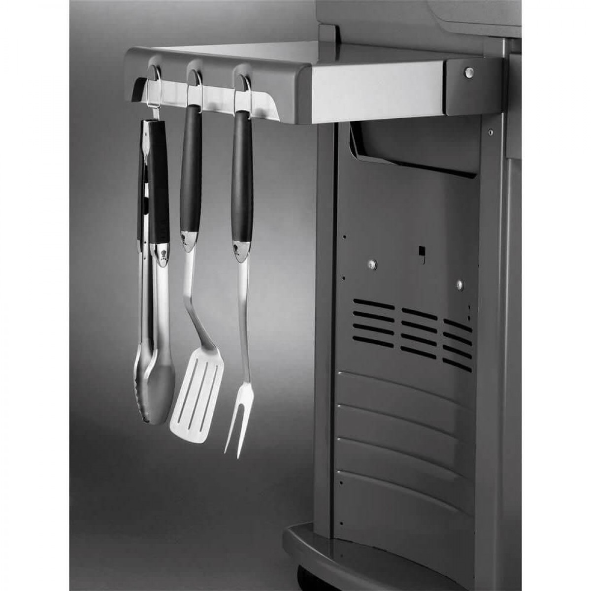 - Три долговечные газовые горелки общей мощностью 9,4 кВт и удобные бесступенчатые регуляторы подачи газа для получения оптимальных результатов при прямом и косвенном методе приготовления , а также при использовании гриля в режиме коптильни;