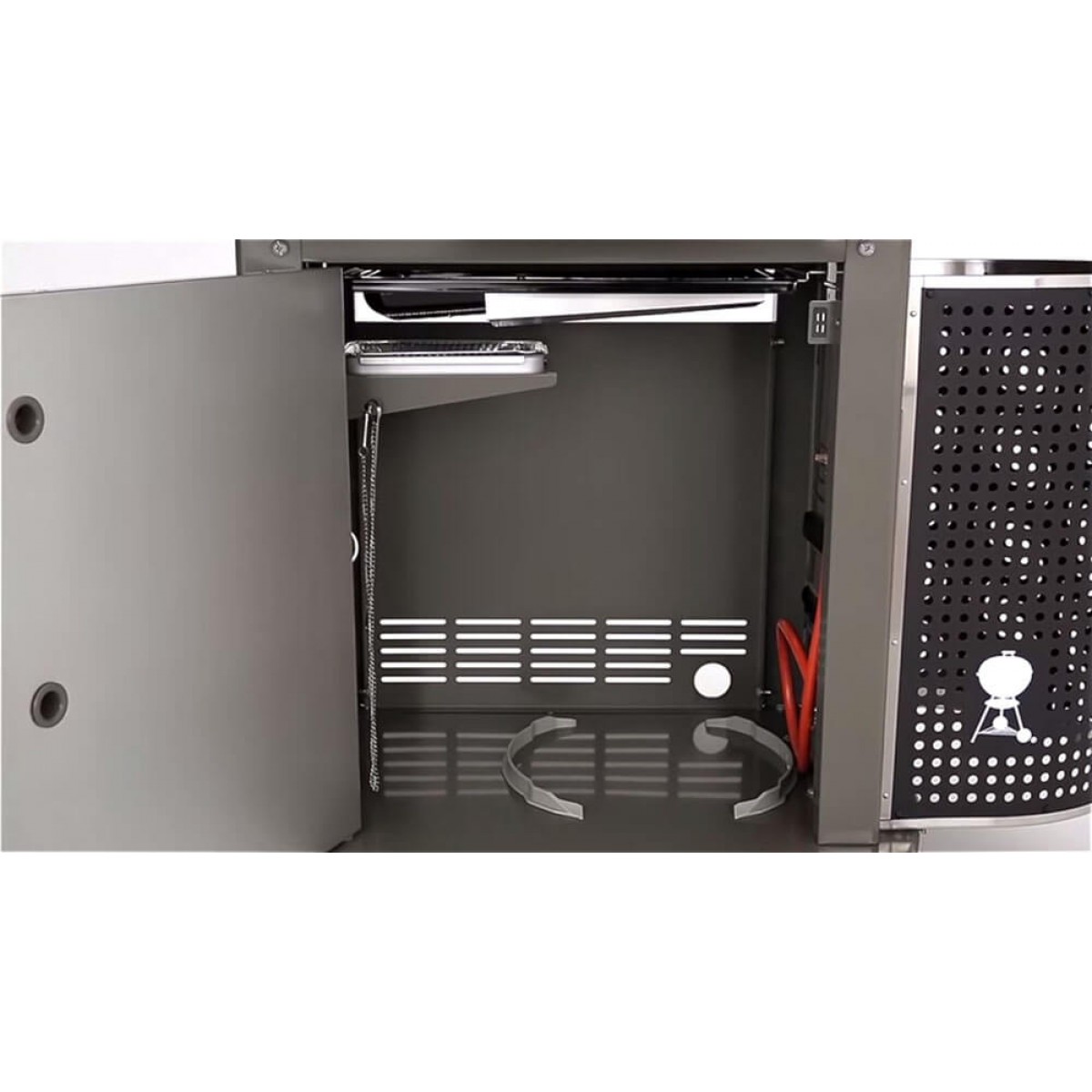- На правой стенке шкафа предусмотрена полка с крепежом для внешней установки баллона с декоративным защитным экраном, также под баллон предусмотрено место внутри шкафа;