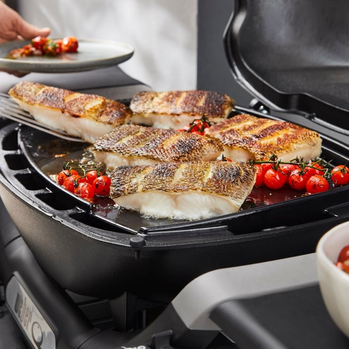 Чугунная планча для серии Weber Q 1000 представляет собой универсальную кулинарную станцию. Она полностью покрывает зону приготовления, создавая идеально ровную жаровую поверхность, необходимую для завтраков, овощей, морепродуктов и других блюд.