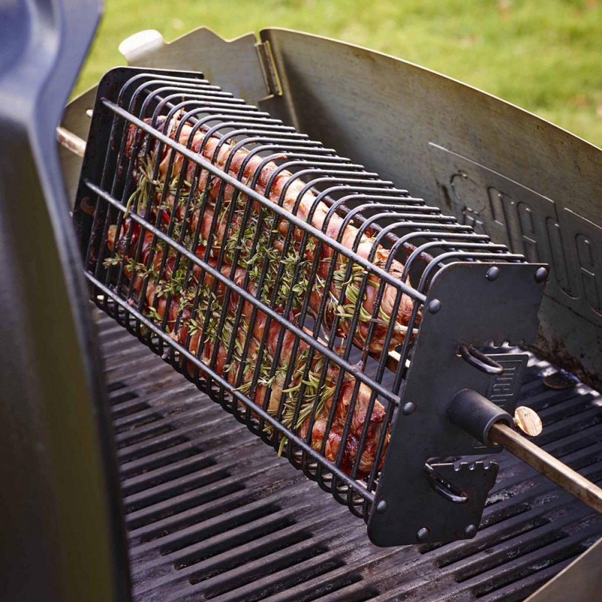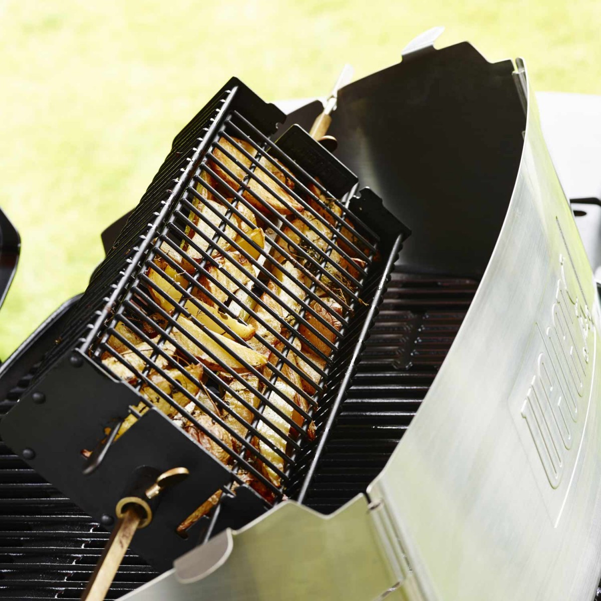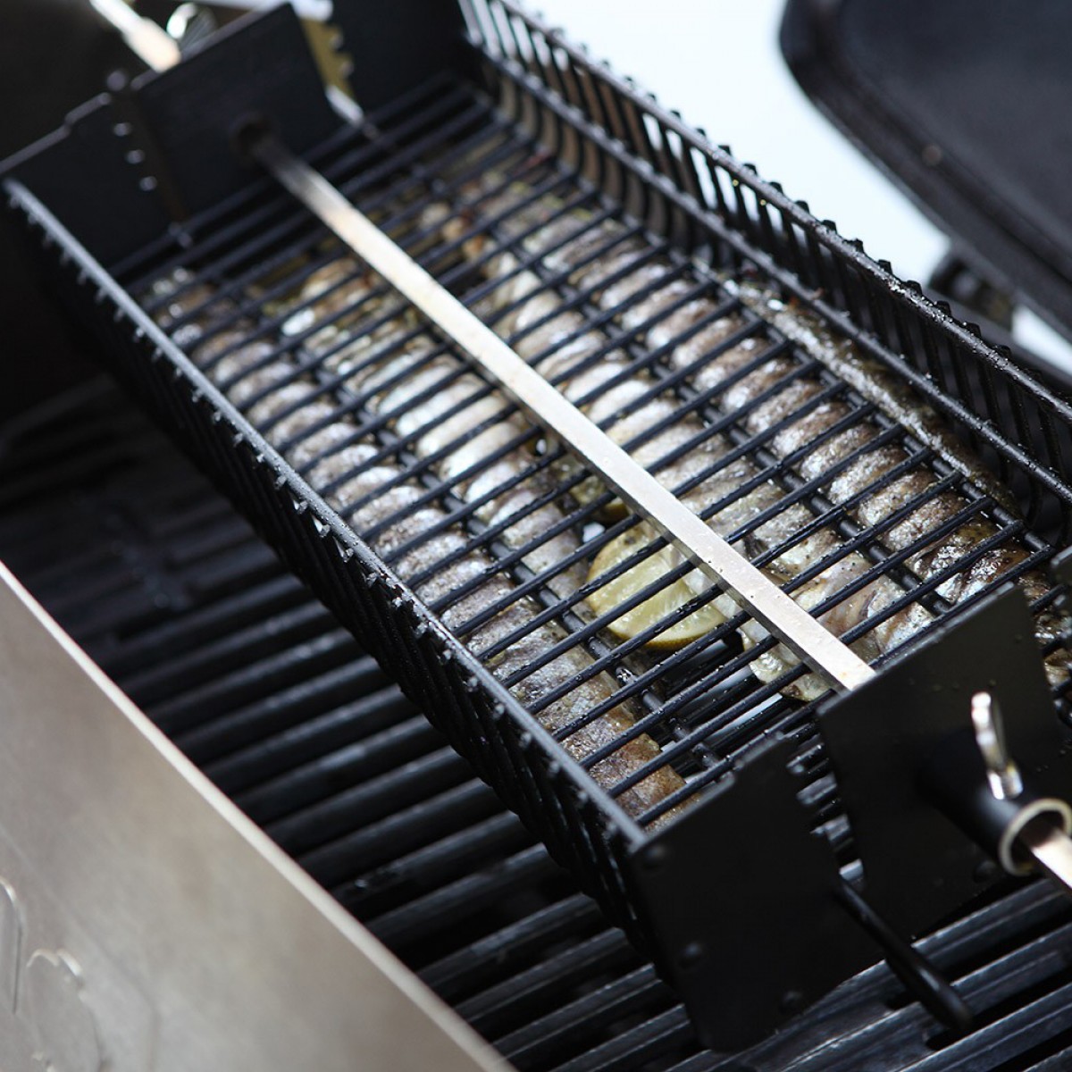 Описание Приготовьте все для спокойной встречи – обо всем остальном позаботится гриль. Поместите рыбу, куриные бедрышки, мясной рулет или смесь ваших любимых нарезанных овощей в корзину для гриля премиум-класса и дайте блюду вращаться на шампуре. Крышка регулируется, поэтому ее всегда легко закрыть, вне зависимости от того, что вы жарите.