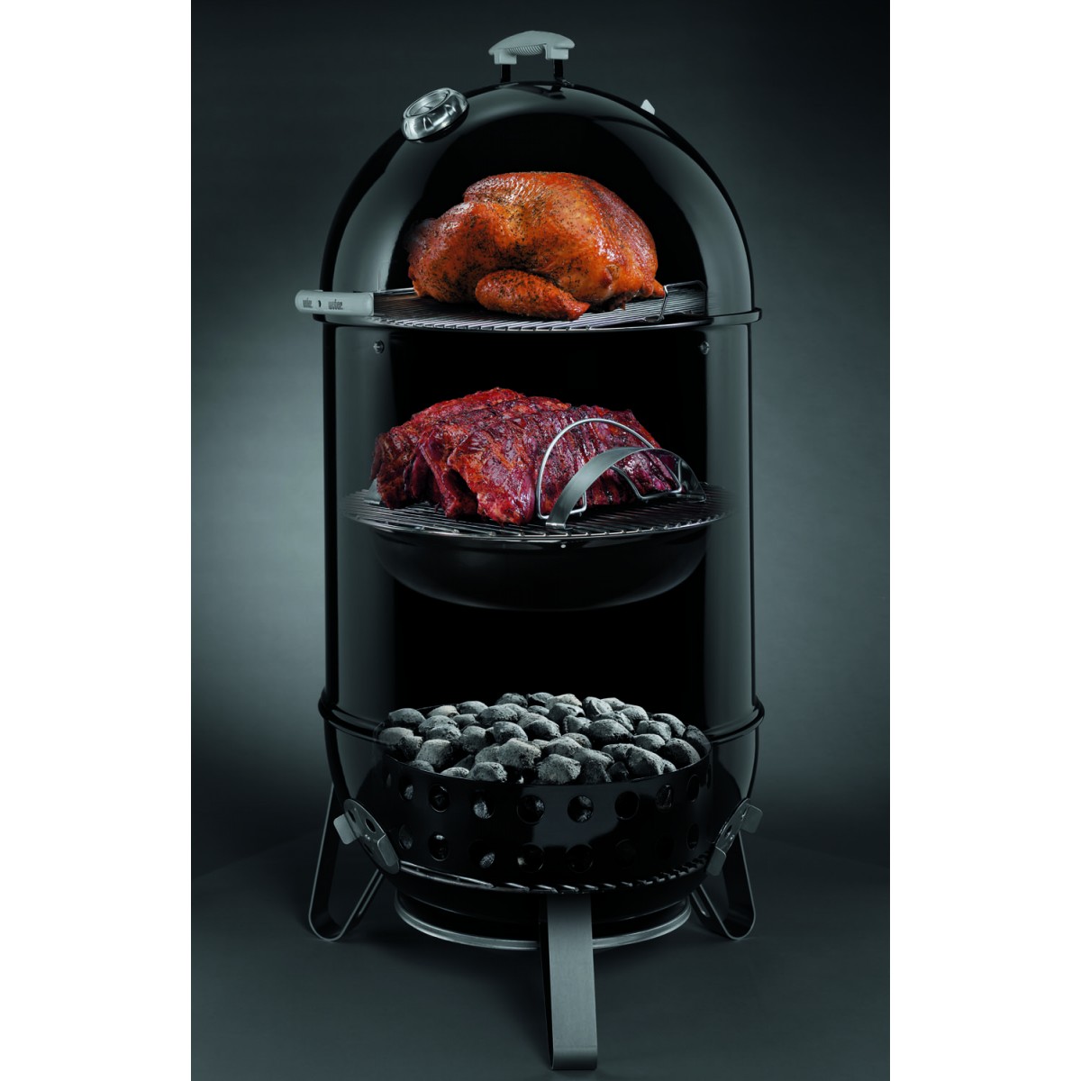 - 2 хромированные решетки диаметром 47 см для одновременного копчения продуктов на двух ярусах одновременно.