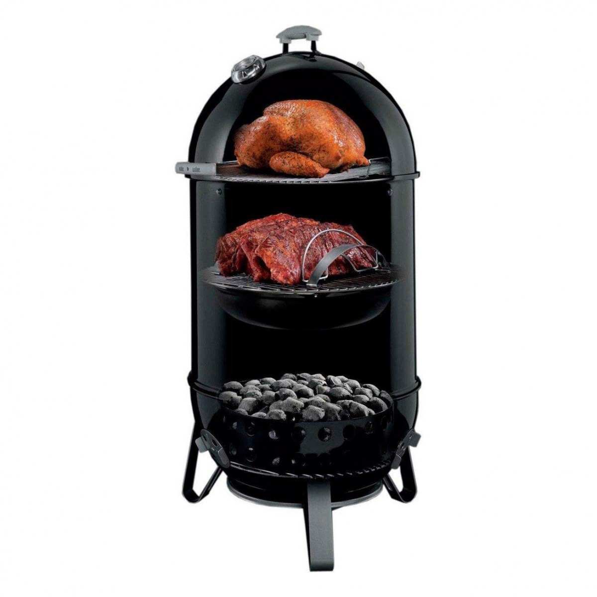 Описание Угольная гриль-коптильня Weber Smokey Mountain Cooker с диаметром чаши 57 см - уникальная угольная коптильня от Weber. Коптильня имеет две массивных решетки для приготовления из хромированной стали, установленный в крышке термометр и большую емкость для воды, обеспечивающую идеальное копчение. Размеры в собранном виде - 61 x 58.4 x 123 см. Вес - 30.8 кг.