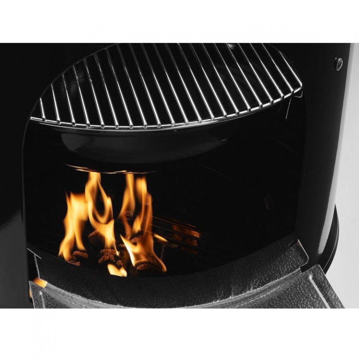 • Отверстие, обеспечивающее доступ к углю во время копчения, с заслонкой из алюминия. Доступ к углю необходим в том числе для подкладывания щепы, дающий ароматный дым.