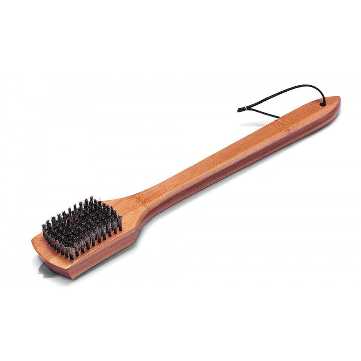 Опис Щітка для очищення решітки для приготування має ручку з бамбука, щетинки з нержавіючої сталі і зубчастий скребок для забруднення, що особливо в'їлися.