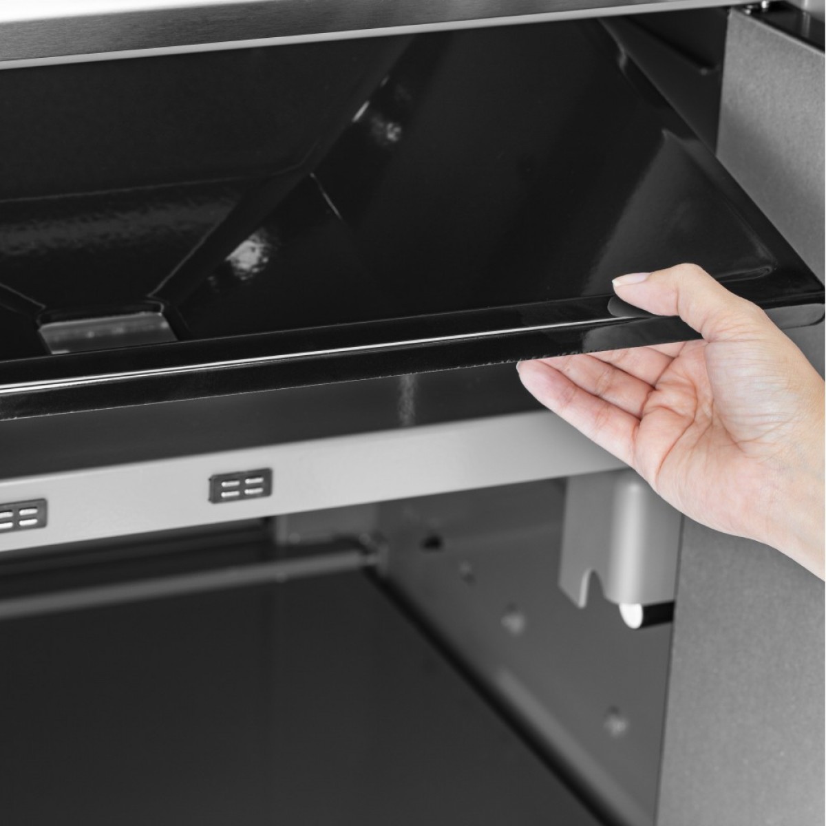 - Три газові пальники GS4 high performance нового типу з прямокутної труби змінного перерізу загальною потужністю 11 кВт та зручні безступінчасті регулятори подачі газу для отримання оптимальних результатів при прямому та непрямому методі приготування та додатковий пальник SEAR BURNER потужністю 3.1кВт для екстра жару центру отвору GBS для рівномірного нагрівання