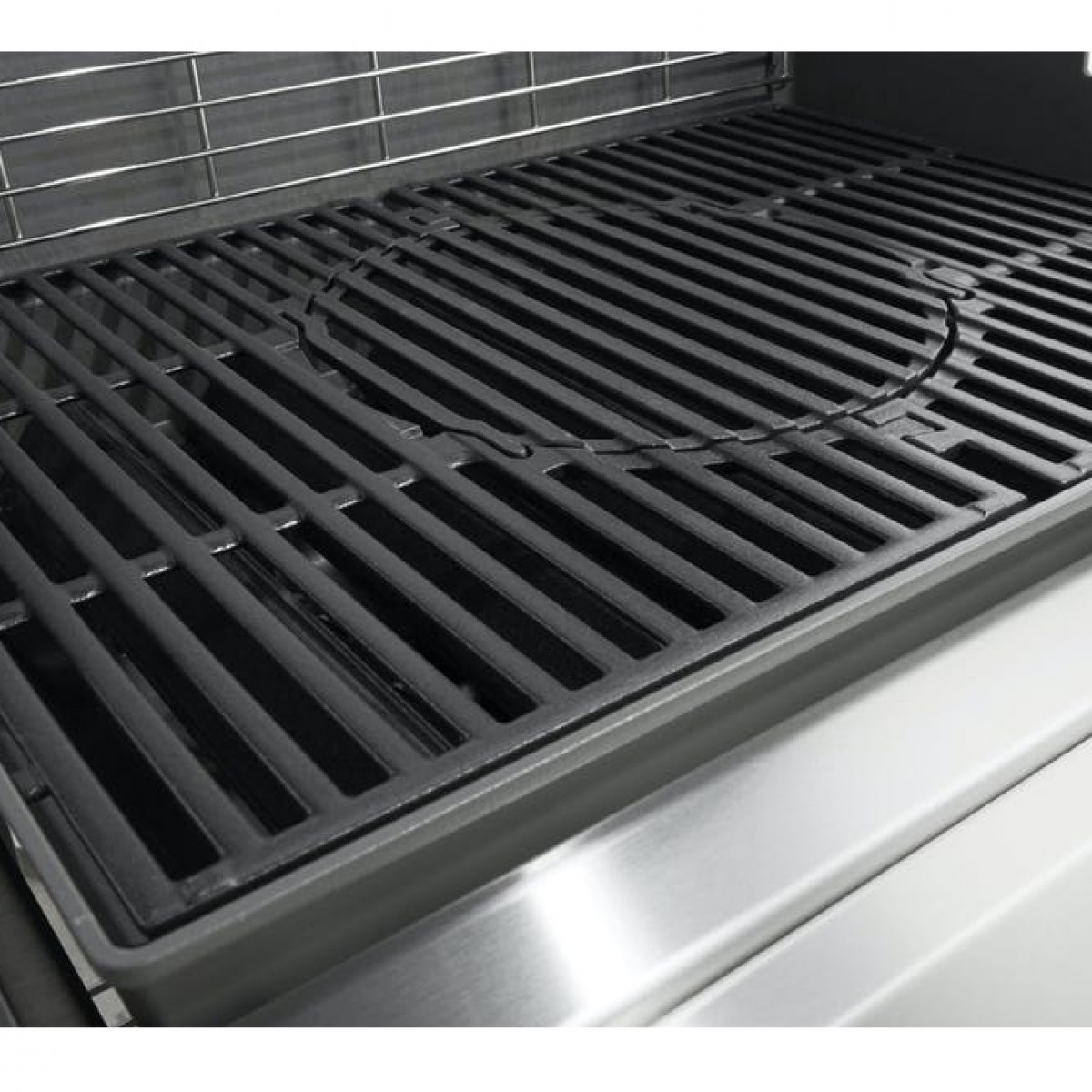 - Чавунна решітка Gourmet BBQ з покриттям порцелянової емалі: запобігає налипанню продуктів на поверхню, забезпечує рівномірний розподіл жару та гарний візерунок.