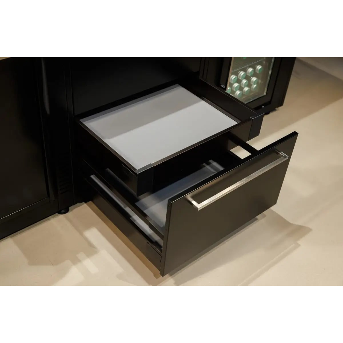 • Фурнітура Soft-close від Blum© забезпечує довговічність і високу стабільність. Механізм плавного закривання на дверцятах і ящиках надає вашій кухні на відкритому повітрі елегантності та забезпечує м’яке закривання.